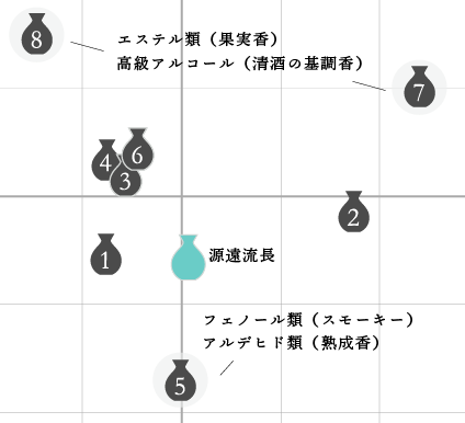 主要日本酒に対する源遠流長のポジショニング