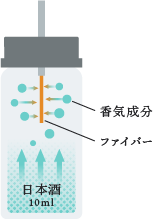 20mL HSバイアルに日本酒試料10mL及び香気成分と吸着するファイバーを入れ、上燗を模した45℃にて30分間保持。その後、加温脱着させてガスクロマトグラフ質量分析計で分析した。