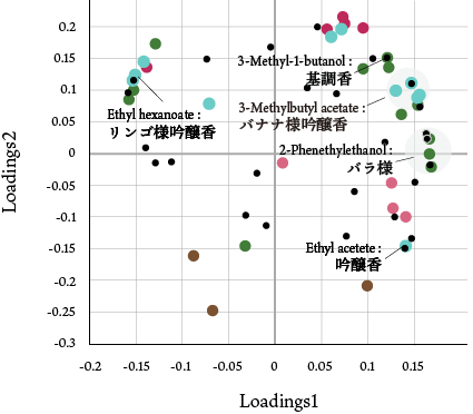 (香気成分の主成分分析に基づく)