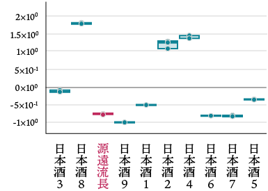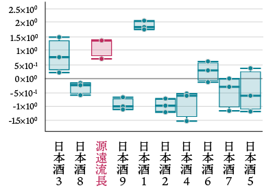 米や水といった「テロワール*1」を生かして、各地の酒蔵で醸された日本酒は、味や香りが大きく異なり、その多様性は魅力のひとつである。それらの中での自社製品のポジショニングや、独自の特徴を知りたいと考えられている。主成分分析*2により、主要日本酒に対する源遠流長のポジショニングや特徴の視覚化を試みた。