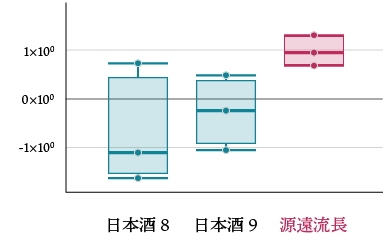 また、源遠流長と日本酒9はアミノ酸は控えめであるが、きき酒で“うま味ある”とコメントされている。それは、他より豊富に含まれるコハク酸によりもたらされていると考えられ、それが源遠流長の特徴と言える。